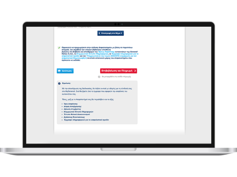 Μεταφέρεστε στη σελίδα πληρωμής. Μόλις ολοκληρώσετε την πληρωμή, λαμβάνετε email με οδηγίες και τα έντυπα του νέου ασφαλιστήριου συμβολαίου σας.