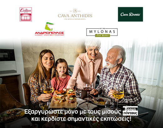 Και κερδίστε σημαντικές εκπτώσεις, εξαργυρώνοντας μόνο με τους μισούς Bonus πόντους σε επιλεγμένους συνεργάτες του προγράμματος Bonus.