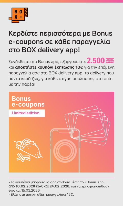 Κερδίστε περισσότερα με Bonus e-coupons σε κάθε παραγγελία στο BOX delivery app!