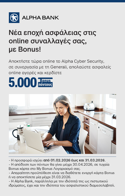 Αποκτήστε το τώρα online μέσω myAlpha Web ή myAlpha Mobile και κερδίστε 5.000 Bonus πόντους.