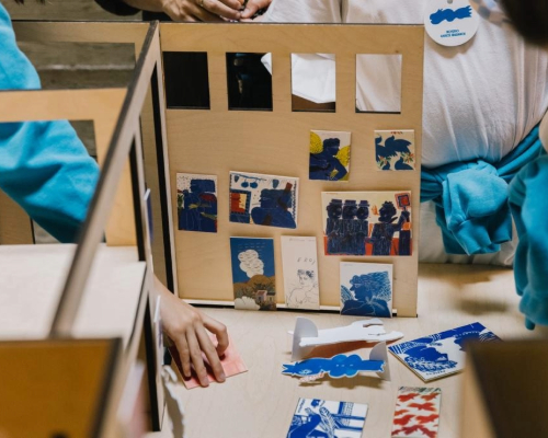 Παράλληλα, οι μικροί επισκέπτες και επισκέπτριες αναλαμβάνουν να οργανώσουν μια ολοκληρωμένη εικαστική έκθεση μέσα σε τρισδιάστατο μοντέλο του μουσείου. Με μια μικροσκοπική κάμερα προβάλλουν σε ζωντανό χρόνο τη διαδρομή του φανταστικού επισκέπτη ανάμεσα στα μικροσκοπικά εκθέματα.