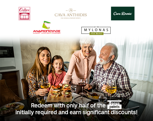 Spice up your Tsiknopempti with the most delicious meal, and earn significant discounts by redeeming with only half of the Bonus points initially required at selected Bonus programme partners.