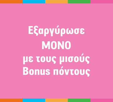 • Στις online αγορές, εξαργύρωση Bonus πόντων πραγματοποιείται μόνο από τους Συνεργάτες που συμμετέχουν στον Πρόγραμμα Επιβράβευσης Bonus και με τα ηλεκτρονικά τους καταστήματα