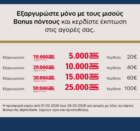 Η Costa Ofrynio Booking συνεργάζεται με το πρόγραμμα επιβράβευσης Bonus της Alpha Bank και προσφέρει στους κατόχους των καρτών Alpha Bank Bonus μοναδικά προνόμια!