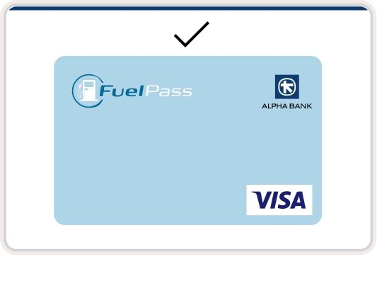 Η κάρτα Fuel Pass Visa είναι ψηφιακή και δεν εκδίδεται σε φυσική μορφή. Την προσθέτετε στο ψηφιακό πορτοφόλι σας και τη χρησιμοποιείτε, σε οποιαδήποτε περιοχή στην Ελλάδα, σε: