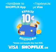 Κερδίστε 10€ επιστροφή απευθείας στην κάρτα σας Alpha Bank Visa με αγορές από 50€ και πάνω σε σχολικά είδη μέσα από το SHOPFLIX app.