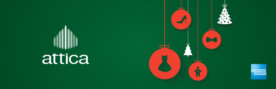 Φέτος, οι εορταστικές σας αγορές με τις κάρτες σας American Express® εκδόσεως Alpha Bank στα πολυκαταστήματα Attica μπορεί να επιφυλάσσουν επιπλέον δώρα!
