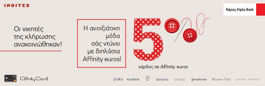 Πραγματοποιήθηκε η κλήρωση για τους 50 τυχερούς που έκαναν τις αγορές τους στα φυσικά καταστήματα του Ομίλου Inditex με την κάρτα Affinity World MasterCard και συμμετείχαν στο διαγωνισμό για δωροεπιταγές αξίας 100€!